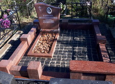 Облицевали бетон полированным гранитом, на территорию участка уложили брусчатку, предварительно приподняв памятник.